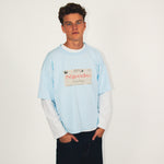 LANGÆRMET PRINT T-SHIRT BLÅ/HVID